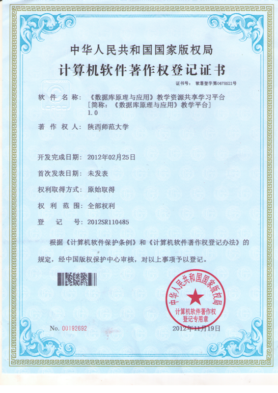 软件著作权-《数据库原理与应用》教学资源共享学习平台1.0