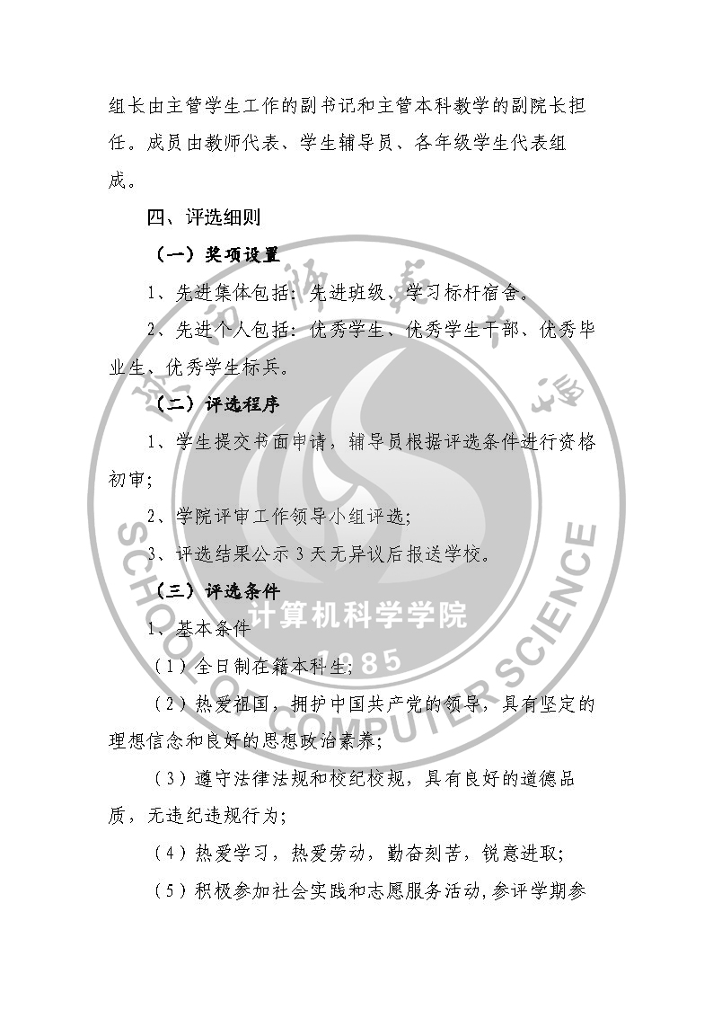 万象城娱乐awc线路本科生先进集体和先进个人评选细则