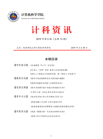 《计科资讯》是万象城娱乐awc线路编辑整理的电子资讯,信息来源为《光明日报》《人民日报》《中国青年报》等权威纸媒,编辑工作由学院优秀本科生党员、团员承担。《计科资讯》主要包括学科前沿、教育在线、党团先锋、青年关注及学院资讯五个版块。学院师生可以从中了解到专业前沿和国家时政大事,欢迎大家下载阅读。