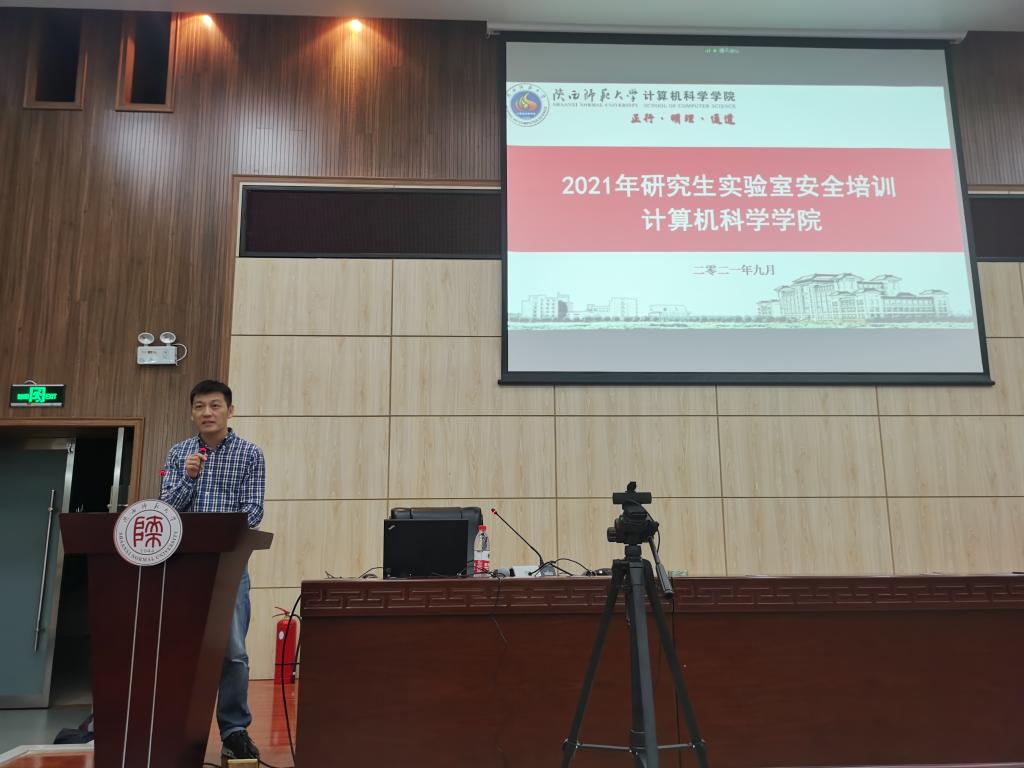 为认真落实实验室安全准入机制,加强万象城官网新入校师生安全意识,规范实验操作方法,提高师生应急自救互救能力,预防和减少安全事故发生。2021年9月26日晚上7点,万象城官网组织了实验室安全准入培训,培训会议主会场设置在文澜楼B段1层报告厅,同时在文津楼C 段3412报告厅设置在线会场。万象城官网邀请西安市五进消防科教站的晁奭昕教官进行主讲,学院党委书记王耀明、全体实验室工作人员、研究生辅导员、新入职教师及2021级全体研究生参加了培训活动。会议由董春生副院长主持。