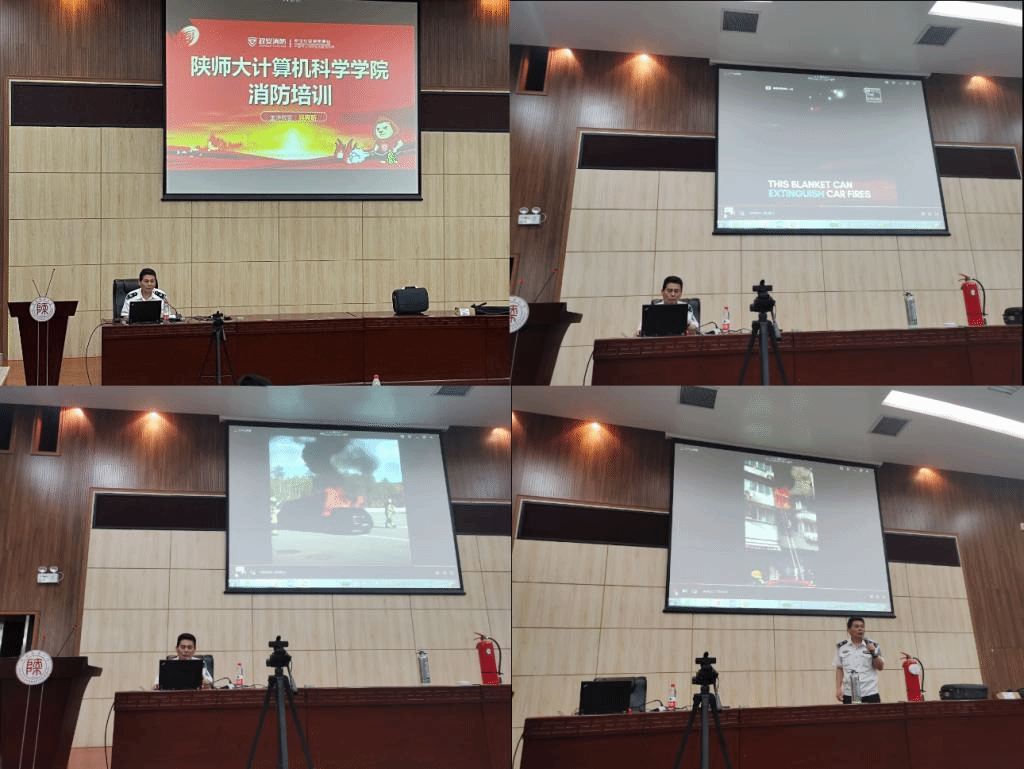 接下来,五进消防科教站晁奭昕教官主讲了安全知识。从安全生产的法律法规讲起,综合运用文字、图片、视频等形式将安全责任、火灾的基本知识、初起火灾的扑救、火场逃生及火灾的防范等进行了系统讲授,并现场演示了消防报警器、灭火器、灭火毯等消防器材的使用方法。