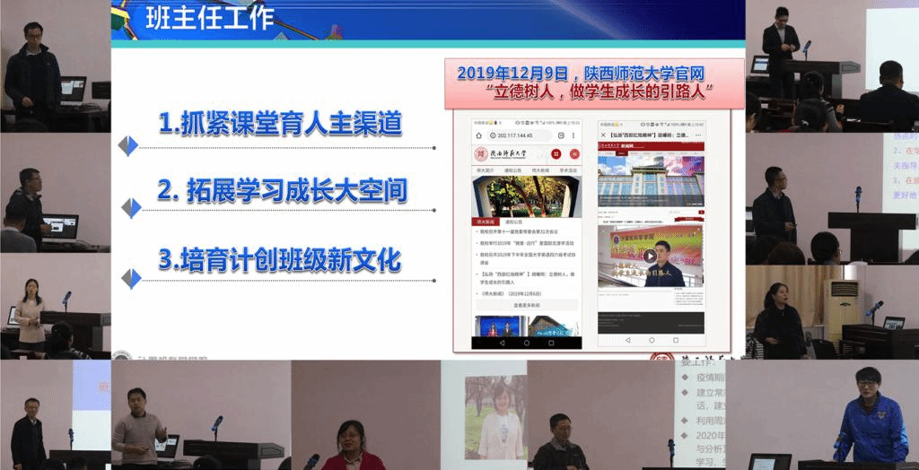 随后,参加考核的班主任通过文稿演示和工作回顾的方式汇报了自己一年来学生工作的开展情况。每位老师从自己的工作内容、工作重难点、工作特色以及最终的成果等方面进行了介绍,分享了在这一年的班主任工作过程当中所收获的心得,同时对自己未来的工作制定了目标并设计了初步规划。
