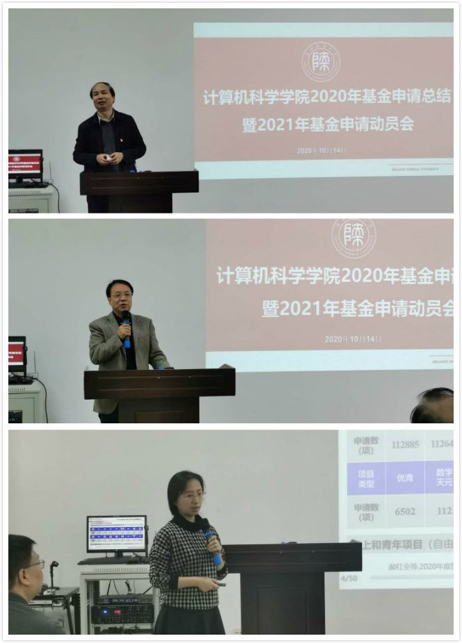 20201014日下午,学院在文津楼3412报告厅举行了2020年国家自然科学基金申请总结暨2021年基金申请动员会。学院院长王小明,书记黄怀平,副院长马苗、董春生及部分教师参加动员会。会议由黄怀平主持。