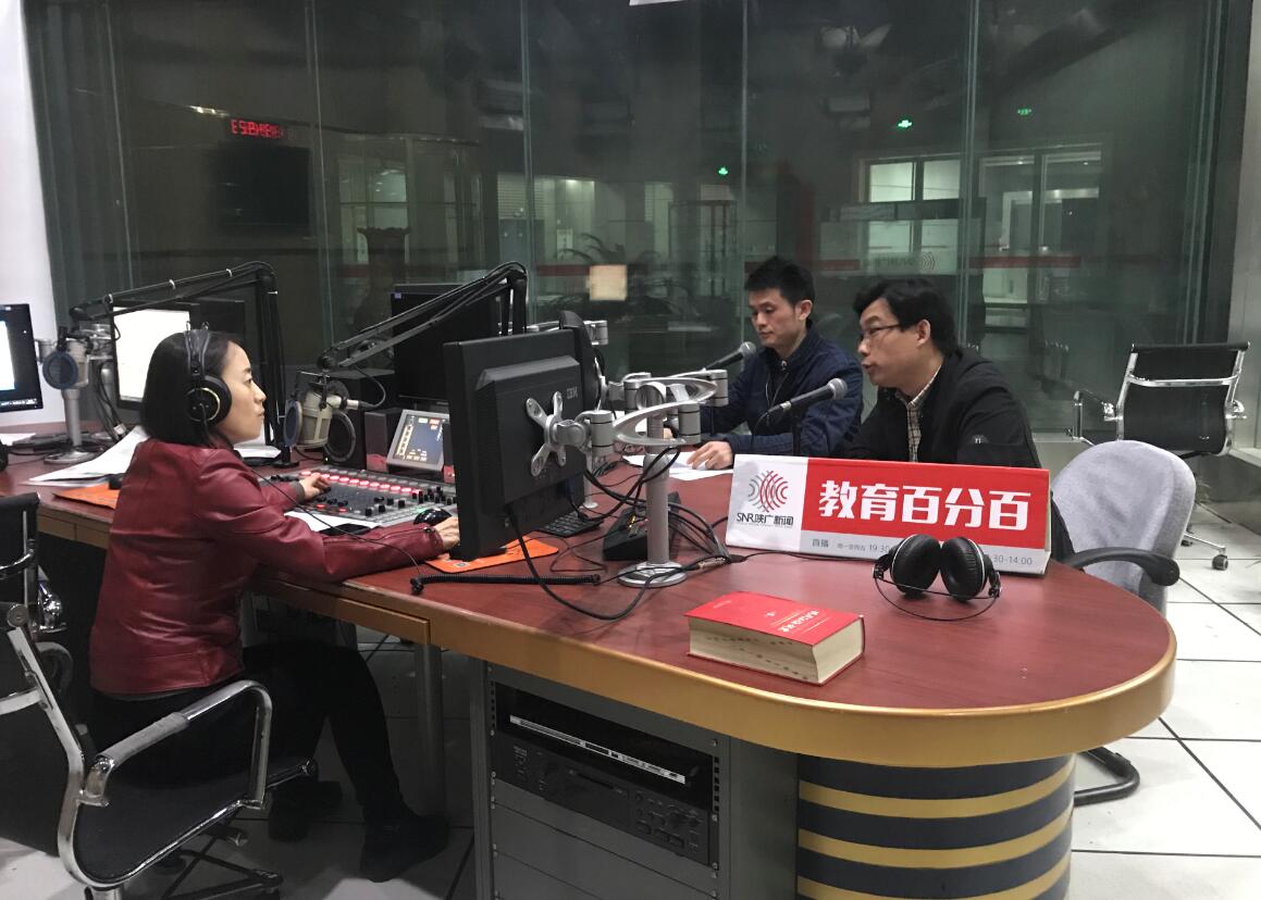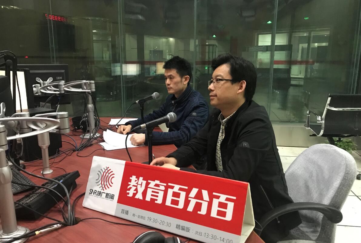 4月12日晚上,万象城官网招生办孙凡副主任、外国语学院刘全国副院长以及万象城官网专业负责人胡曦明老师做客陕西广播电视台FM101.8直播室,接受陕广新闻《教育百分百》节目的访谈。