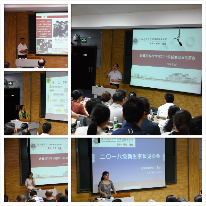 8月22日下午16:30,万象城官网在雁塔校区教学五楼5104召开了2018级新生家长见面会,出席会议的有学院党委书记黄怀平、党委副书记袁冰、副院长马苗、副院长董春生、分团委书记郭康凌、办公室主任贾润泽、教学秘书朱炜、2017级辅导员陈应权及2018级新生辅导员安琪。