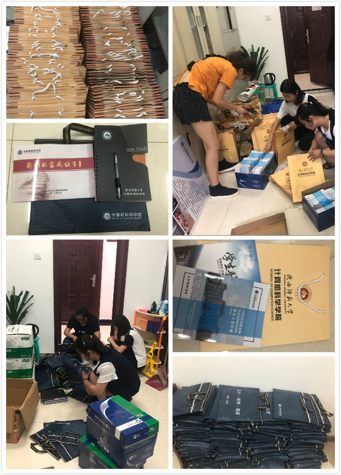 8月20日一大早,迎新志愿者来到雁塔校区。学院为2018级新生精心准备了新生提袋、印有学院院徽的文件袋,《我们的家风故事》《新生入学手册》等迎新资料。《新生入学手册》《学生手册》等详细告诉了新生应如何开启大学生活;《我们的家风故事》从新生饱含真情的作品中选刊而出,借以呼吁计科学子传承优良家风。志愿者们紧接着赶到了学汇路,顶着烈日,悉心制作并认真摆放展板。尽管天气炎热,衣衫尽湿,但大家毫无怨言。之后,志愿者们又马不停蹄地赶往男生8号宿舍楼和女生院21楼,细心张贴楼道文化海报。一组精心设计的海报,全面而详细地介绍了计科院的发展历史、师资力量、学院文化、优秀学子等,为大一新生进一步了解学院、专业提供了恳切建议。