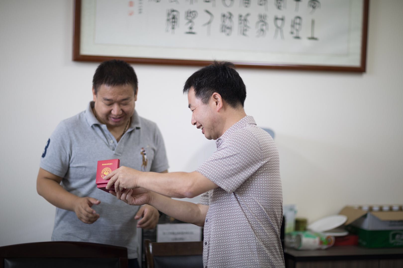 裘国永老师向各位校友赠送院徽,院徽背面刻有各位校友的名字和学号,是独一无二的纪念品,代表了学院对校友们的祝福。