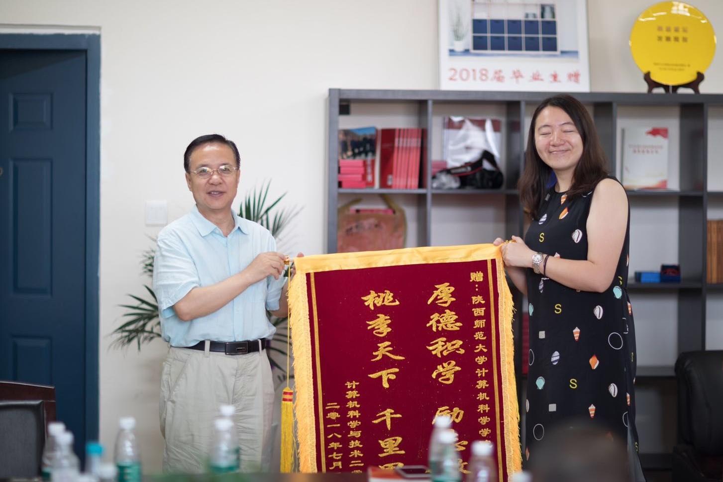 会上,校友代表向学院赠送锦旗“厚德积学,励志敦行,桃李天下,千里思源”。