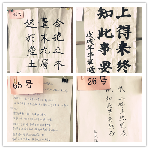 此次活动是学院传统文化教育项目——书写中国的第二次活动,第一次作品主题为“书写中国精神”,院内外青年学生提交了包括五四精神、井冈山精神、长征精神、延安精神等主题作品;第二次作品主题为“书写习近平总书记用典”,习近平总书记在系列重要讲话中多处引经据典,寓意深邃,极具启迪意义,学生们提交了“路漫漫其修远兮,吾将上下而求索”“少年辛苦终身事,莫向光阴惰寸功”“合抱之木,生于毫末;九层之台,起于累土”等主题作品。学院希望各班级、团支部能继续组织学生加强对习近平用典的学习,从中汲取精神力量,增强文化自信,培养起对历史文化尊重与自信,涵养浩然正气,培养笃学精神。
