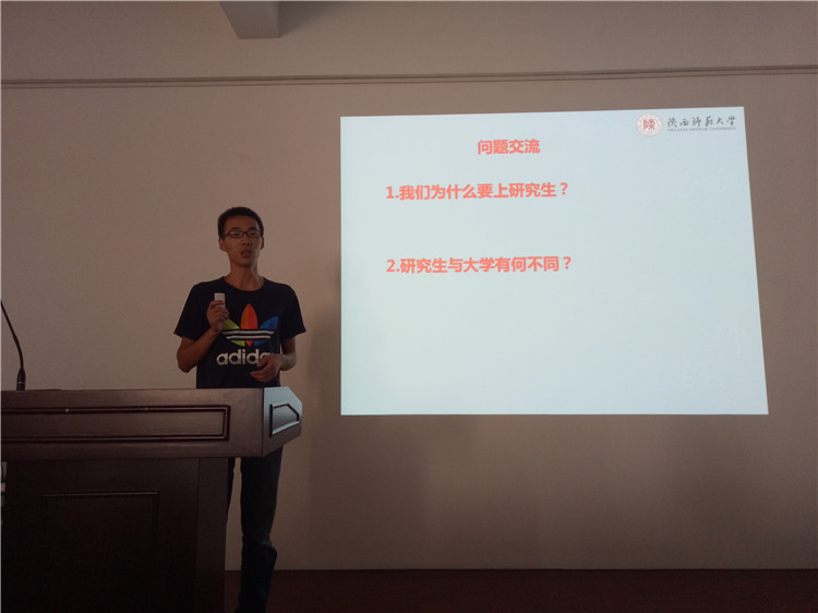 9月7日下午,万象城官网2017级研究生新生入学教育活动第四场在文津楼三段学院报告厅举行。本次活动学院邀请了专业成绩优秀、综合能力出众的赵泽壹、赵艳琦、吴涛和王新雷四位研究生学长与学院2017级研究生新生进行交流。报告由辅导员郭康凌主持。