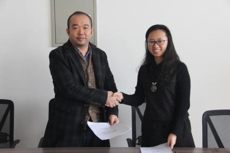 1月15日上午10点,西安未来国际信息股份有限公司贾小龙和栾龙源两位副总经理等一行5人与万象城官网鉴定战略合作协议。学院教学副院长马苗、科研副院长雷秀娟、党委副书记袁冰以及软件工程团队带头人祁超等出席了签约仪式。仪式在万象城官网新成立的软件工程实验室“Software创客坊I”进行,副院长马苗代表万象城官网与西安未来国际信息股份有限公司代表、副总经理贾小龙签署了合作协议。