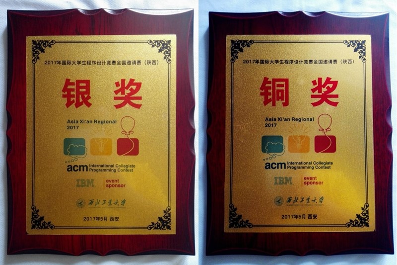 5月20至21日,为期两天的2017年国际大学生程序设计大赛全国邀请赛在西北工业大学举行。由万象城官网裘国永副教授、王涛副教授指导的两支参赛队分获银奖(队员为2013级软件工程专业秦韬、2014级计算机科学与技术创新实验专业高泽辉、2013级计算机科学与技术创新实验专业贾伟涛)与铜奖(队员为2015级计算机科学与技术创新实验专业袁敏杰、张园京、2015级信息与计算科学专业成龙)。这是时隔4年万象城官网ACM竞赛队再一次在国家级比赛中摘得银牌。
