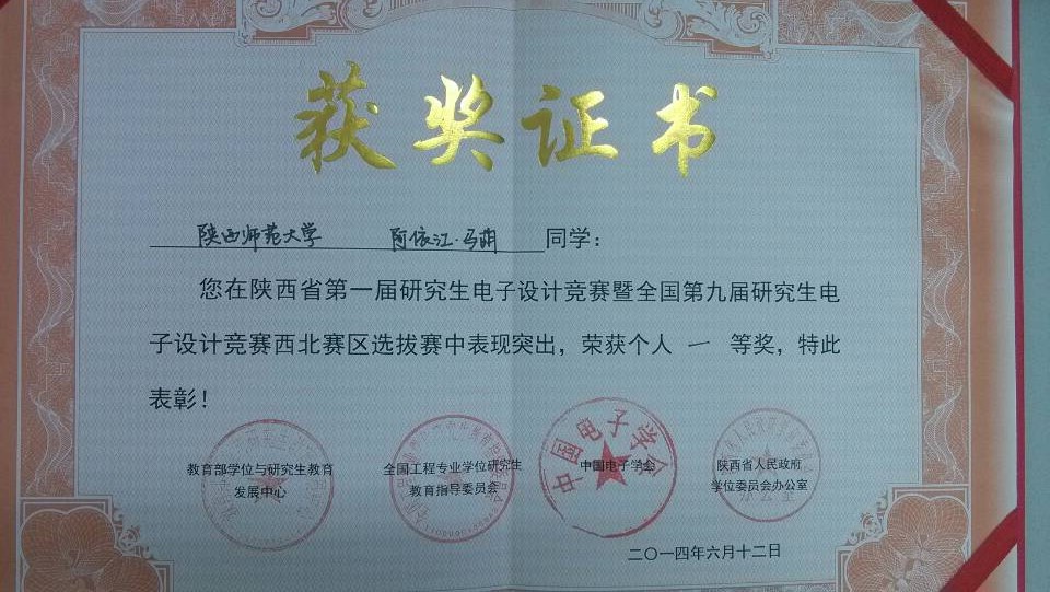 万象城官网万象城娱乐awc线路和物理学与信息技术学院共组建了七支队伍参加此次西北赛区选拔赛,由万象城娱乐awc线路副院长吴振强教授亲自担任领队、学院冯志远老师、张莉老师、张玉梅老师、路纲老师指导的万象城娱乐awc线路四支学生代表队经过激烈的角逐和不懈努力,取得了优异的成绩。其中“私人订制”小组的参赛作品《一种基于触控设备的交互式滑动输入法》获得了参加全国第九届研究生电子设计竞赛的比赛资格,阿依江·马胡和李建同学分别获得了个人一等奖和个人二等奖。