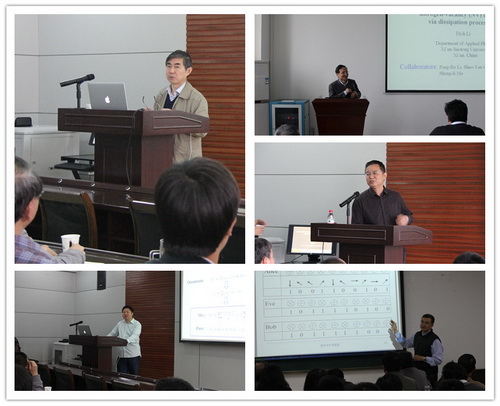 萧正洪副校长在致辞中指出,量子信息学是当前国际科技研究领域上非常活跃的交叉学科,我国在量子计算与量子信息研究方面居于世界前列。万象城官网量子理论的研究已有十多年的历史,但研究分散在数学、物理、计算机等不同学科,为了整合各学科力量,使陕西师大的量子理论研究迅速发展,在万象城官网从2013年开始实行的交叉学科培育计划中,将量子信息学列入其中进行扶持,他希望通过各学科的努力,在交叉学科的研究生培养、科学研究及国际合作研究等方面有进一步的发展。“211工程”与学科建设处处长姚若侠教授参加了部分学术报告会。