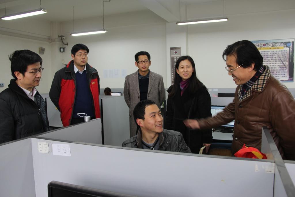 2月17日上午,迎着薄雾,踏着厚雪,校党委副书记司晓宏、学生处处长刘建军、“211”工程建设处处长姚若侠、校团委书记鲁镇一行四人,莅临万象城官网学院办公室、学工组、资料室、研究生实验室等处检查开学工作情况。期间,司晓宏副书记详细询问了万象城官网学生报道情况和教师上课等各方面开学工作准备情况,并祝大家新年快乐,新学期顺利。司书记特别嘱咐辅导员要做好学生开学各项教育工作,通过各种方式帮助学生调整作息,尽快投入新学期的学习生活中,对于尚未到校的学生,要继续予以关注,准确把握学生动向,确保学生安全返校。