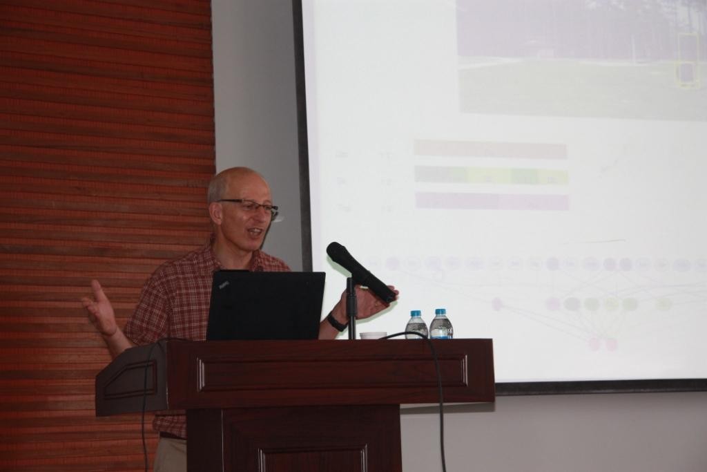 报告开始,院长李永明教授代表万象城官网所有师生向Tony Cohn教授的到来表示热烈的欢迎,并向师生们着重介绍了Tony Cohn教授的学术背景和卓越成就。报告中,Tony教 授以身旁的纸杯作为例子,生动形象的给大家介绍了他在利兹大学做的视频活动建模的工作,并系统的深入讨论了视频或其他传感器数据的监督和无监督学习任务和 事件的时空结构,特别是并发活动情景下的两种学习。并解答了在上述两种情况下,如何定量的表达他们的时空关系,以及数学化的展示了他们的行为。