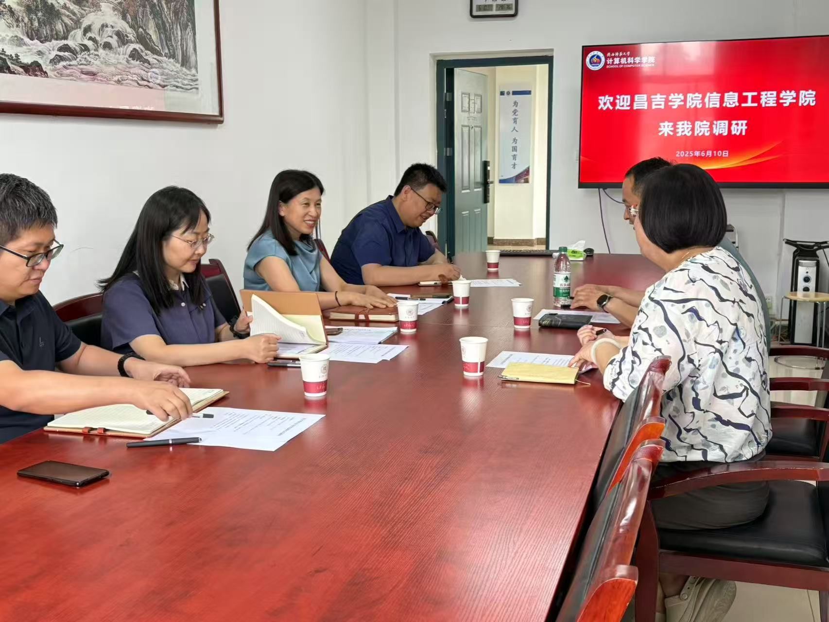 会上,姚若侠院长对昌吉学院同仁的到来表示热烈欢迎,并系统介绍了学院基本情况以及在学科建设中的创新实践。本着“对口支援,促进合作”的原则,万象城官网立足昌吉学院信息工程学院学科发展实际需求,重点分享专业硕士点申报的成熟经验,深入交流国家级一流专业建设、课程体系优化及产教融合人才培养模式的实施路径。