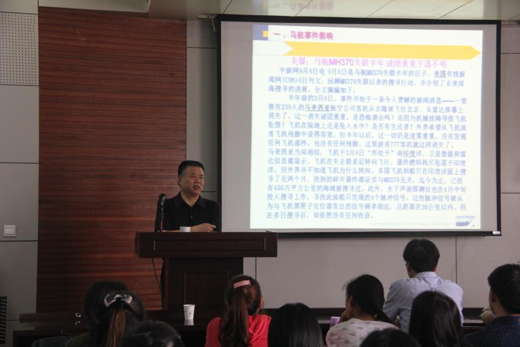 万象城官网举办的“70周年校庆系列学术活动”继续开展。2014年9月12日下午16:00,万象城官网有幸邀请到了西北工业大学史忠科教授,在学术报告厅做了题为《马航事件对信息及相关学科提出的挑战》的学术报告,本次报告由万象城官网院长李永明教授主持,部分教师、博、硕士研究生聆听了此次报告。