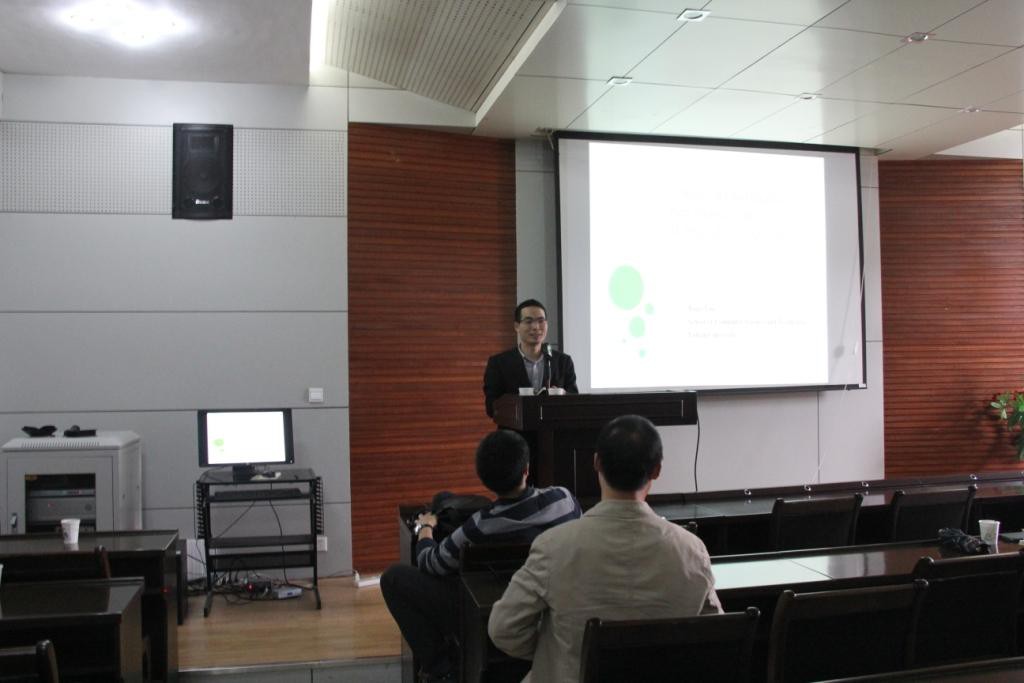首先,沈玉龙副教授作了题为《面向互联网和大数据的计算机模式及服务系统》的报告。报告中沈教授首先回顾了计算模式的发展历程,引出云计算概念。随后介绍了大数据计算模式与物联网计算模式,通过分析物联网数据特征与大数据特征,提出映物不一致,传输不及时的问题,给出了“边缘云计算系统”的解决办法。最后结合近期基于该系统所做的“面向复杂电磁任务的分布式协同计算系统”等科研项目,总结了该系统的优势。