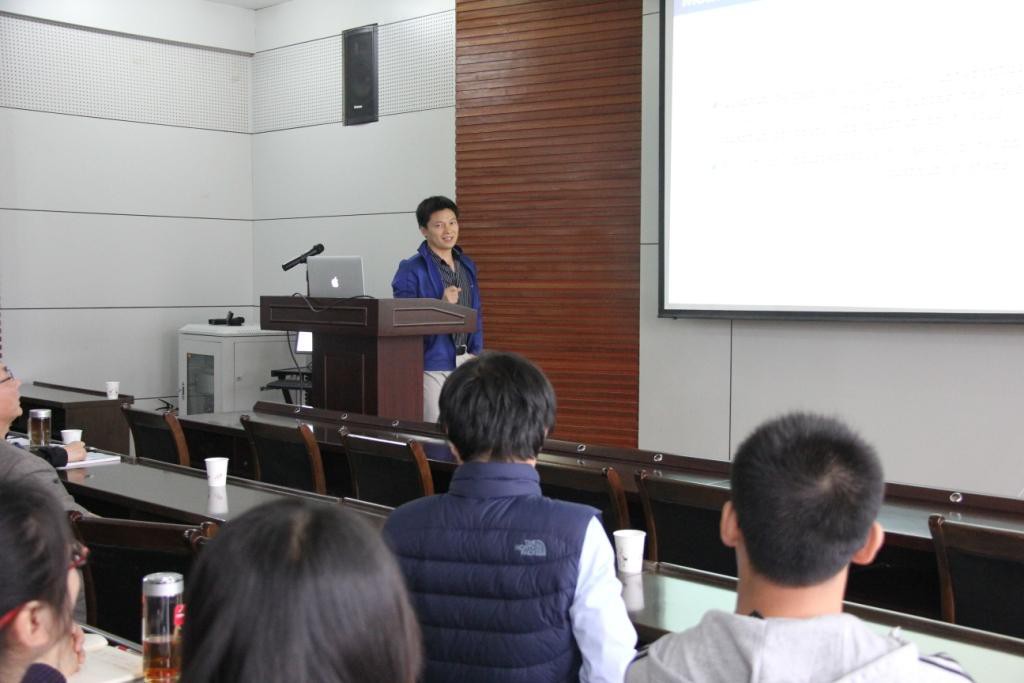随后,谢明修博士(后)做了题为《Discrimination and a strict Hierarchy in Distinguish ability Norms》的报告。报告中,谢博士回顾了2-qubit态的区分问题,通过局部操作和经典通信(LOCC)显示了带任意小的错误概率的分辨,并且向我介绍了其最新研究结果。