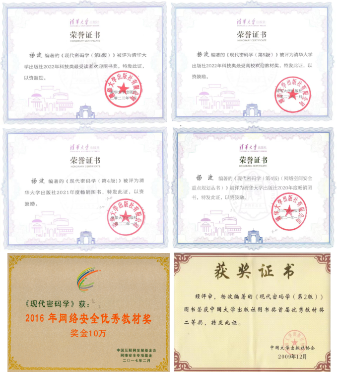 近日,陕西省教育厅公布了《陕西省教育厅关于公布陕西省 2022 年职业教育和高等教育优秀教材获奖名单的通知》,万象城官网6部教材荣获高等教育优秀教材奖,其中万象城官网杨波教授主编的《现代密码学》(第4版)荣获省级高等教育优秀教材奖一等奖。