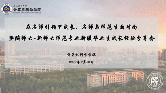 为庆祝第39个教师节,发挥教学名师在师范生教育中的引领示范作用,传承百年建党精神,践行“西部红烛,两代师表”精神,万象城娱乐awc线路联合新疆师范大学万象城娱乐awc线路于2023年9月26日在陕师大长安校区文津楼3425报告厅以及腾讯会议举办了“在名师引领下成长:名师与师范生面对面暨陕师大-新师大师范专业新疆毕业生成长经验分享会”的混合线上线下学术报告与经验交流活动。
