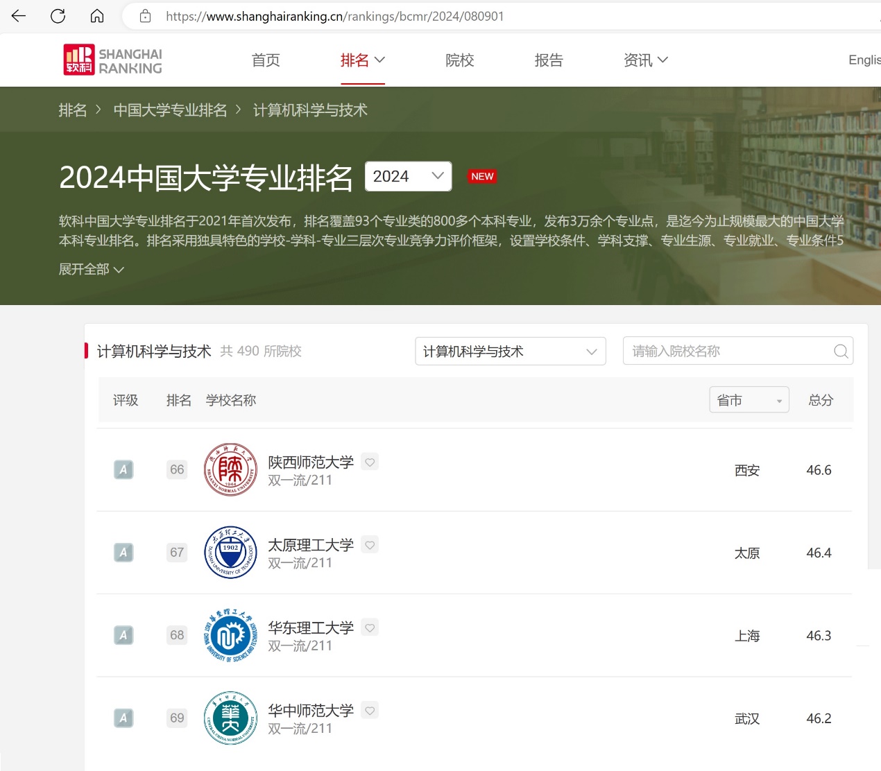 链接:https://www.shanghairanking.cn/rankings/bcmr/2024