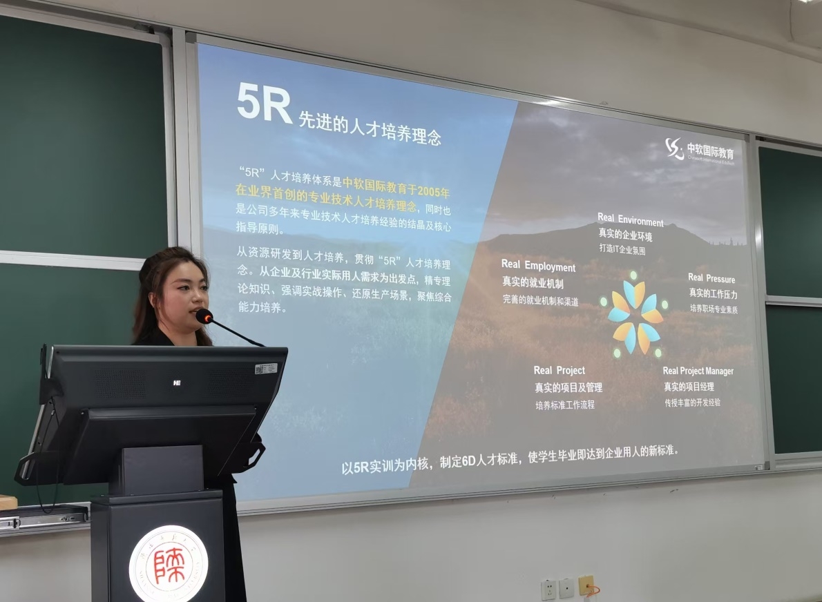 首先,党委副书记郭康凌老师发言强调了实习过程中的纪律、安全问题,要求同学们处理好实习与考研、就业等的关系;任杰老师作为实习带队教师代表强调了专业实习对于学生积累项目开发经验,熟悉企业运作的重要性,鼓励同学们积极实践,主动学习,融入企业,提前适应走向社会的身份转变;中软国际科技教育集团下属西安中软聚智信息技术有限公司代表马欣悦介绍了企业情况,明确了实习目标、任务内容以及实习要求等;非师范班班主任王艳娥老师强调了专业实习的重要性,希望同学们珍惜实习机会,遵守实习纪律,提升动手能力和团队协作能力。最后,教学副院长李鹏做动员讲话,强调了专业实习在本科人才培养中的重要地位,同时也是了解社会、认识职场、锻炼自己的重要途径,希望同学们高度重视,同时将安全意识牢记于心,能够在实习中学以致用,锤炼自我,平安顺利地完成实习。