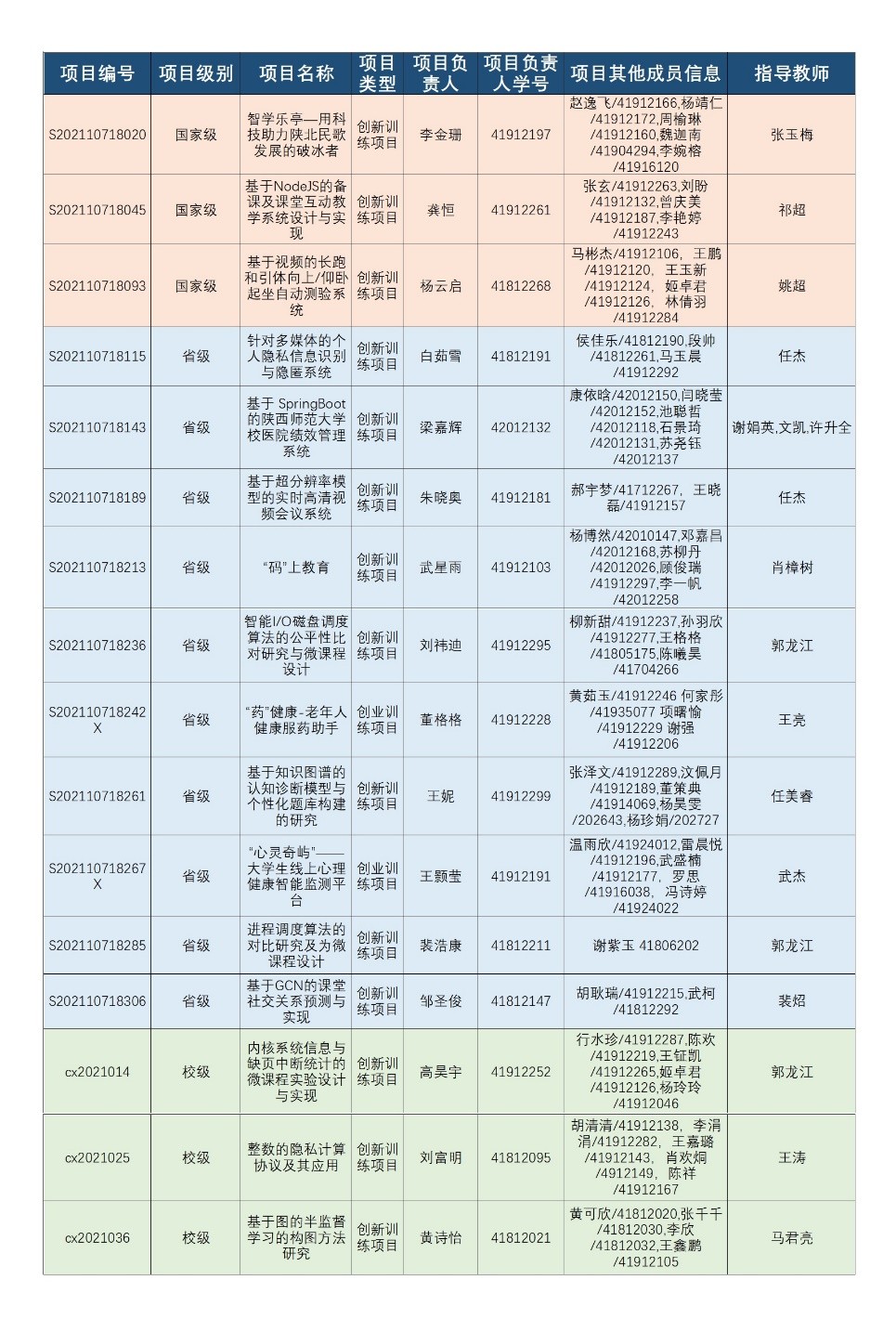 经过教务处组织评审,2021年“大学生创新创业训练计划”项目立项结果于近日公布,万象城娱乐awc线路共获批立项16项,其中国家级立项3项,省级立项10项,校级立项3项。名单如下: