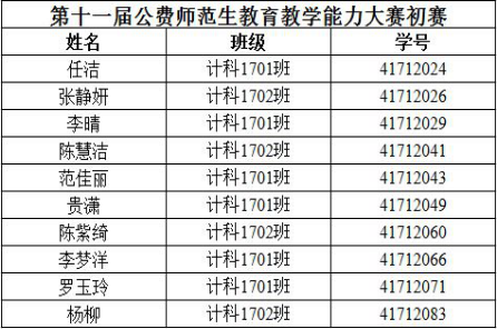 附:万象城娱乐awc线路第十一届公费师范生教育教学能力大赛初赛晋级名单