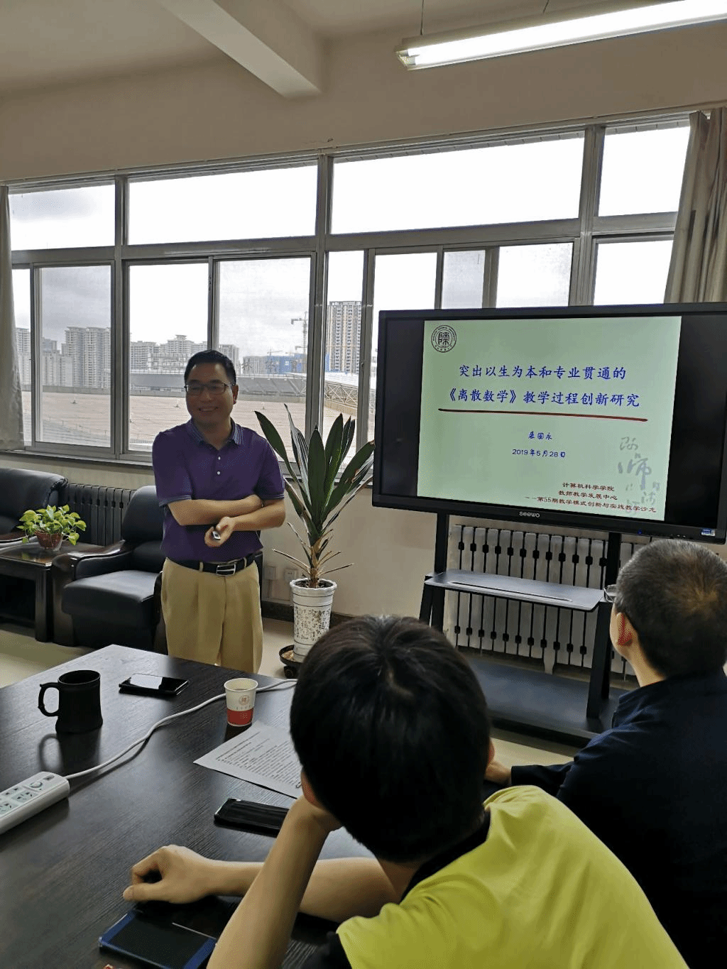 裘国永副教授以“突出以生为本和专业贯通的《离散数学》教学过程创新研究”为题,报告了自己针对《离散数学》教学中遇到的难点和问题,开展了教学模式创新的研究与实践,具体做法是:1)梳理课程与后续专业课程知识及人工智能等学科前沿之间的关联性,精选与专业课相关的教学内容;2)精心设计与计算科学相关的教学案例;3)引入计算机题目和研究性问题,鼓励学生参加ACM/ICPC等竞赛,让《离散数学》的学习贯通整个专业;4)引入“不散、不满、不死、不快、不灌”的课程教学方式;5)突出以学生为本,构建促生学的过程性课程考核评价。目的是让学生了解《离散数学》知识在计算科学中的应用并能够学以致用,把《离散数学》变成有深度、有前瞻性的“金课”,切实提高课程教学质量。