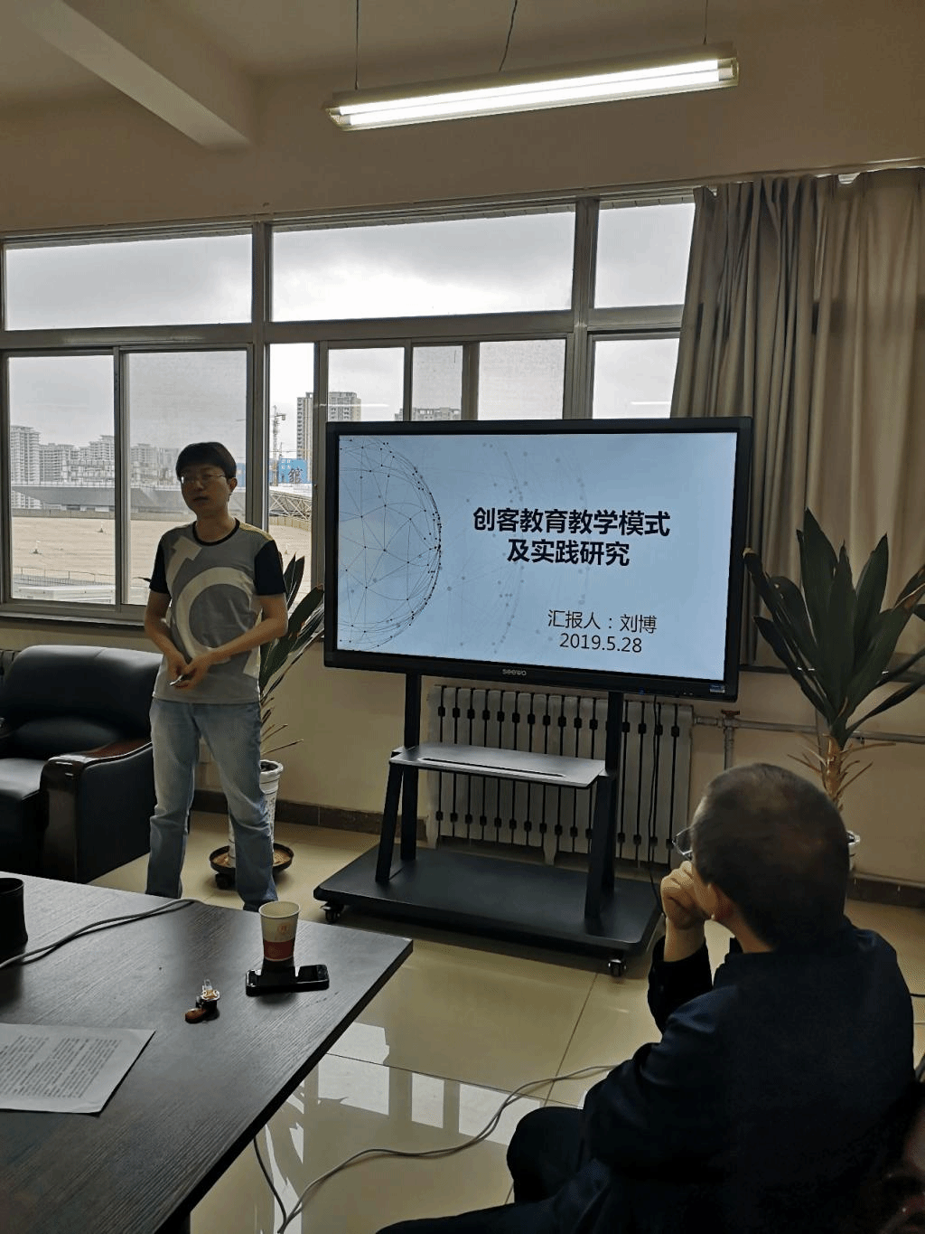 刘博老师报告的题目是“创客教育教学模式及实践研究”,他指出了在最近公布的《中国教育现代化2035》中,明确指出加快信息化时代教育变革,提升一流人才培养与创新能力,建设高素质专业化创新型教师队伍。因此他在教学研究中的目标是通过创建创客空间,编写创客教育实训手册,结合STEAM教育理念,采用合作式教学方式,在本科开设的《互联网思维》选修课上开展创客教育教学实践,培养合格的中小学创客型的教师。