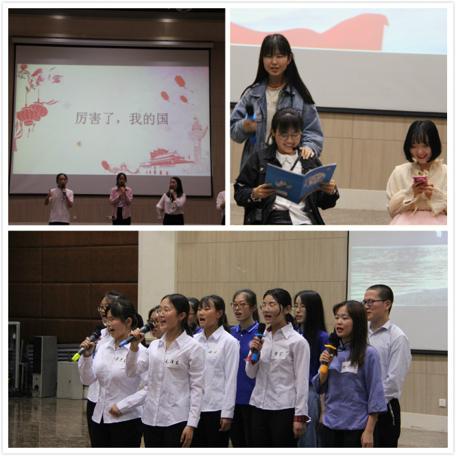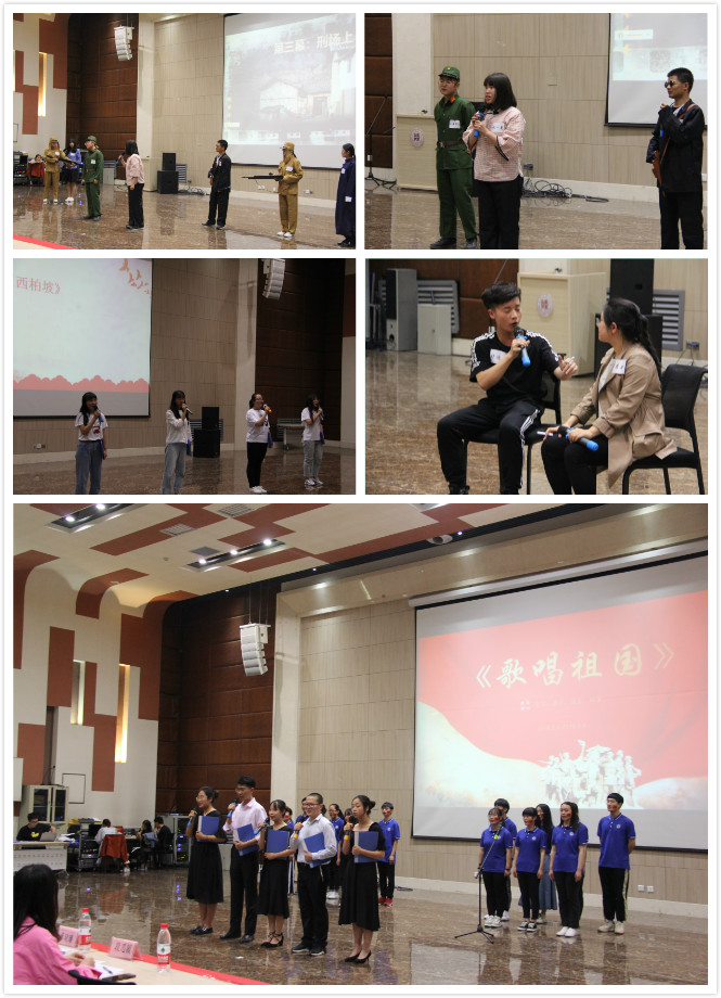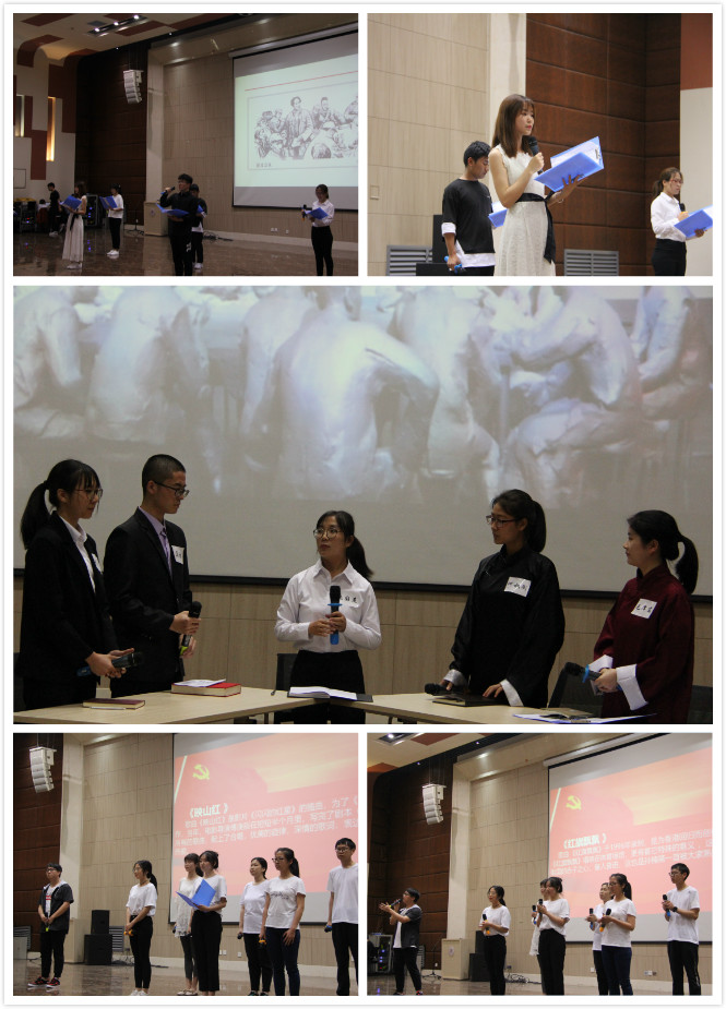 随着主持人宣布决赛正式开始,比赛正式拉开帷幕。决赛演绎主题鲜明,形式多样,主要分为诗朗诵、歌曲以及话剧等。第一小组的诗朗诵《长征》带我们回顾了革命先烈坚忍不拔、自强不息、勇往直前的崇高精神,在长征精神的指引下,我国取得了举世瞩目的成就,令我们为之自豪。第二小组话剧表演《红船》以中共一大召开为背景,为我们还原了开天辟地、敢为人先、坚定理想、百折不挠、立党为公、忠诚为民的红船精神。第三组的歌曲串烧表达了对红军的热爱、对伟大祖国的衷心依恋和真诚歌颂,他们用嘹亮的声音,表达着对祖国的深切依恋,让在场的老师同学们热血沸腾。第四组《恰同学少年》采用了话剧结合朗诵的形式,将一代伟人毛泽东的形象生动形象地展现出来,表现出一代伟人的豪情壮志。第五组的三句半表演《厉害了,我的国》展示了在中国共产党的带领下我国近代以来在经济、政治等方面取得的成就,激发了我们的民族自豪感,坚定了我们的理论自信、道路自信、制度自信和文化自信。第六组立足现实,从身边的小事出发,讲述了改革开放以来我国的巨大变化,他们的话剧表演《改革开放》情真意切,感人至深,让我们感受到改革开放给我们国家和社会带来的巨大便利,激励同学们艰苦奋斗,为实现民族复兴的伟大中国梦贡献力量。第七组的《进京赶考》以诗朗诵的形式向我们展示了我们党从西柏坡进驻北平时的场景,把红色岁月和新的历史时期连接在一起,身为新时代青年的我们,更应保持蓬勃朝气,才能继续在赶考的路上,向历史、向人们提交满意的答卷。第八组的话剧表演《赵一曼》向我们展示了一个抗日女英雄英勇无畏、宁死不屈的形象,在场的观众跟着剧情,时而忍俊不禁,时而潸然泪下,让我们感受到今天的和平与安宁来之不易。第九组的话剧表演《习近平的七年知青岁月》,向我们展示了习近平总书记是如何从一个城市少年变成一个能吃苦耐劳的青年,展现了习近平总书记的平易近人以及为人民服务的崇高精神,使我们对于总书记的精神风貌有了更进一步的了解。第十组的朗诵《五四青年》,用歌曲和朗诵的形式,向我们展示了当时青年学子的风采,让我们对于五四精神有了更近一步的了解,同时也明确了自身肩负的历史使命。