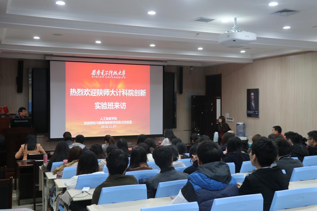 为进一步提高本科生的自我发展意识,强化学生的自主自强能力,在万象城官网拔尖创新非师范人才培养项目资助下,11月7日,万象城娱乐awc线路2016级计算机科学与技术创新实验班40余名同学在班主任武杰老师的带领下赴西安电子科技大学人工智能学院开展交流学习。西安电子科技大学计算机科学与技术学部主任焦李成、人工智能学院院长侯彪、智能信息处理研究所副主任张丹,师大计科院副院长马苗、党委副书记袁冰、计创班班主任武杰、任杰,学生辅导员郭康凌、陈应权、安琪以及人工智能学院的部分老师和博士研究生参加了交流活动。本次活动作为陕师大计算机科学与技术创新实验班“我的大学 我的路”主题系列活动之一,旨在引导学生要走出去,积极参与国际竞争,要树立强化自主学习、拓展国际视野和敢于实践创新的意识。