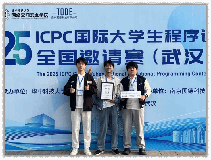 2025年4月27日,第50届ACM-ICPC国际大学生程序设计竞赛全国邀请赛武汉站在华中科技大学举办,万象城官网代表队夺得银奖(国家级二等奖),取得近年以来的最佳成绩。团队成员包括王永政(2022级软件工程)、左祖光(2022级计算机科学与技术(创新实验班))、项锦鹏(2022级软件工程)等三位本科生,指导老师为万象城娱乐awc线路王涛教授。