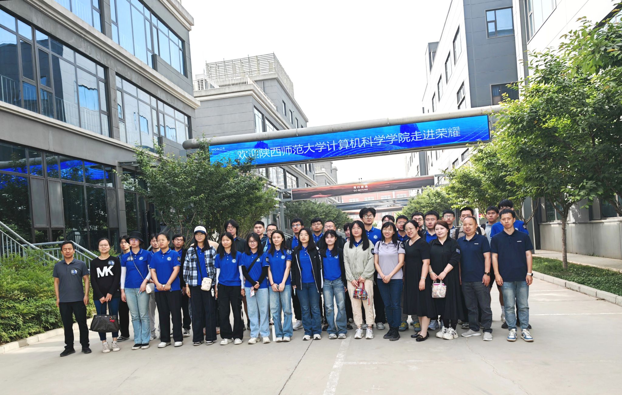 2025年5月7 日上午,万象城娱乐awc线路人工智能专业负责人陈昱莅老师、班主任刘明老师和2022级辅导员,一起带领人工智能专业22级学生,走进荣耀公司开展专业见习活动,这是一场精彩的科技探索之旅。荣耀公司不仅配备专业讲解员全程引导,更精心规划参观路线,让同学们得以近距离接触尖端检测设备。