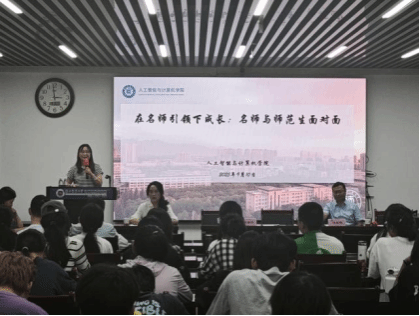 会议第三项为师生互动交流。学院师生就信息技术课堂中人工智能的开展方式,人工智能如何深入应用于课堂中而不浮于表面设计,以及如何在大学时代建立周期性的信息技术学科教学能力等问题与三位老师进行了深入的交流。