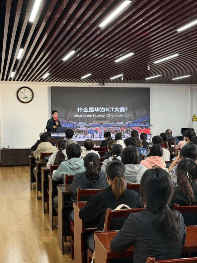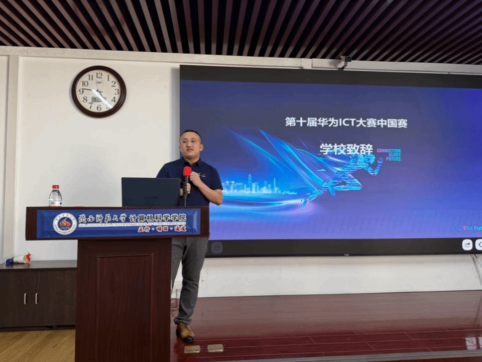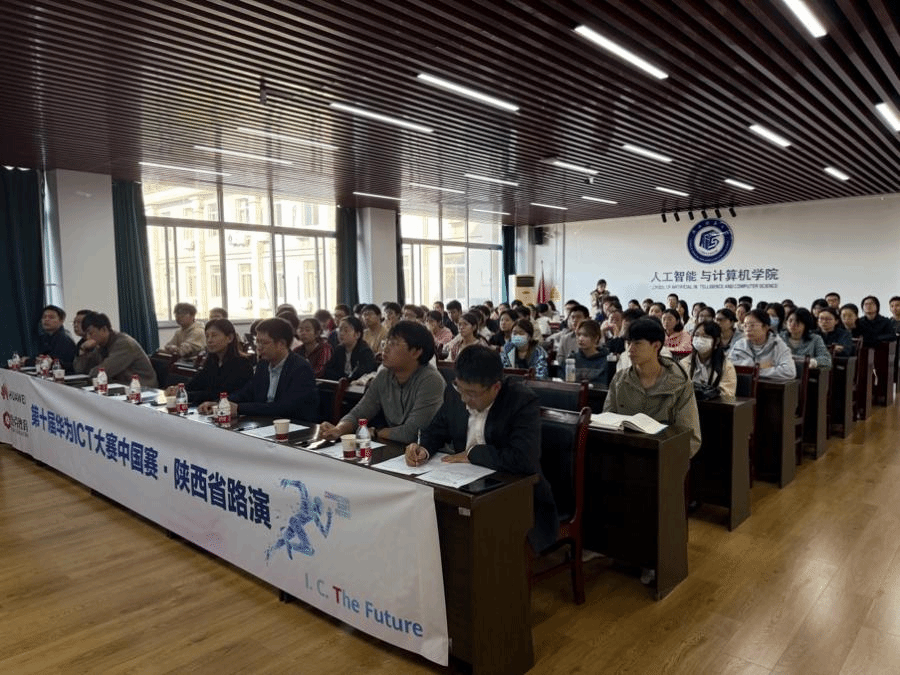 2025年9月23日,万象城娱乐awc线路华为ICT大赛路演宣讲会在长安校区文津楼学院报告厅隆重举行。人工智能与计算机学院院长姚若侠、副院长李鹏、2024级辅导员刘中央、张皓然以及学院竞赛负责人王涛老师出席会议。华为陕西人才发展总监谷羽新、华为陕西人才发展经理付皓焱、华为陕西鲲鹏昇腾高校生态经理陈佳俊、泰克教育市场经理王瑶瑶、泰克教育西北教学总监侯向东等企业代表共同出席。部分2024级本科生及后续拟参赛的学生们参加了宣讲会。会议由王涛老师主持。