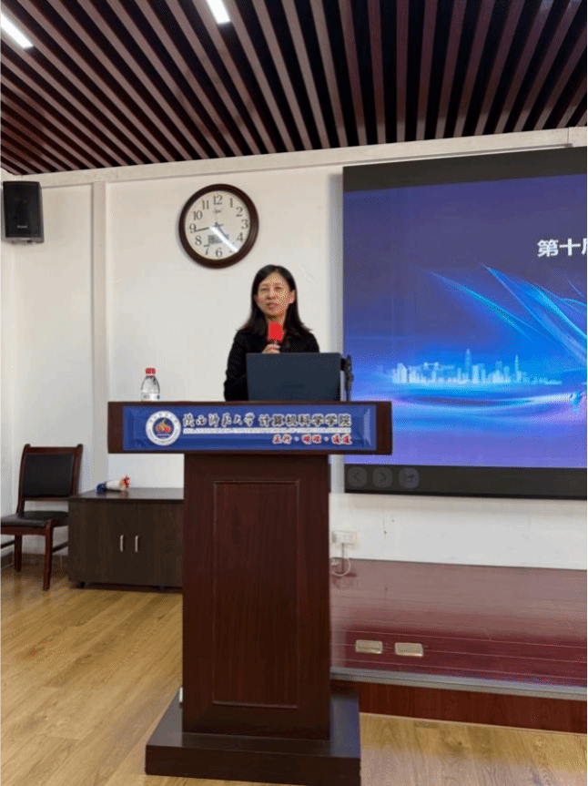 姚若侠院长介绍了学院与华为成立领先级ICT学院的产学研合作情况,强调了参加包括“华为ICT大赛”在内的高水平学科竞赛对于培养学生实践能力,对接工业界现实应用需求的重要意义。