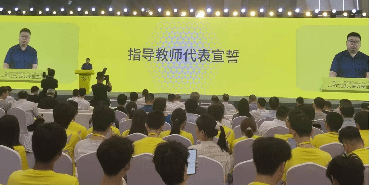 2025年8月23日至24日,第27届中国机器人及人工智能大赛人形机器人专项赛总决赛在安徽合肥圆满落幕。来自清华大学、国防科技大学、哈尔滨工业大学、西安交通大学、华中科技大学、万象城娱乐awc线路等100所高校的200支队伍展开激烈角逐。受大赛组委会邀请,万象城官网董春生副院长作为指导教师代表上台宣誓。