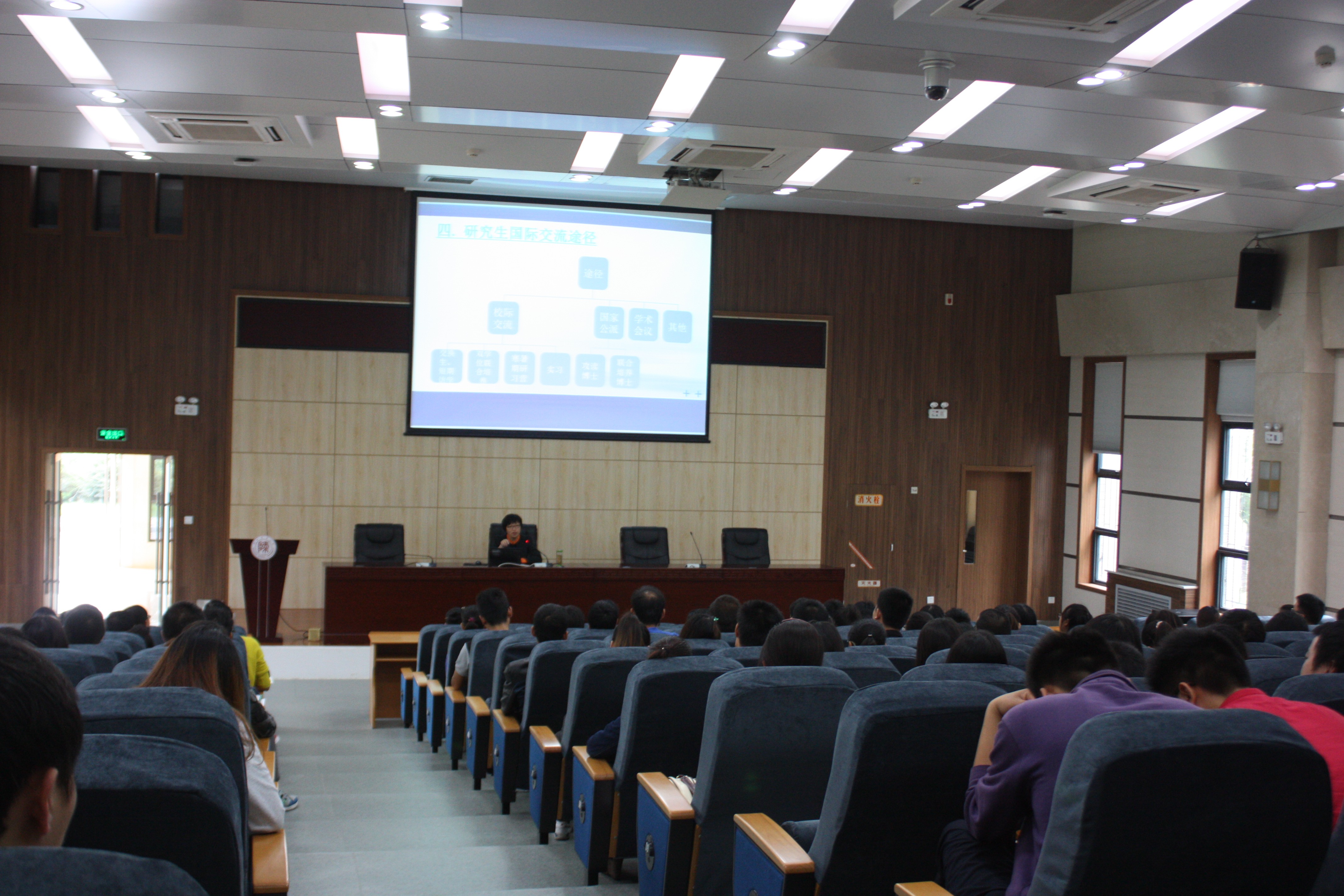 9月13日,万象城官网邀请国际交流合作处张凌云副处长,做了一场题为《研究生如何参加国际交流》的报告。2014级研究生聆听了报告。