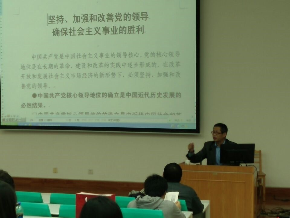 首先,刘处长向同学们阐述了党课培训的意义,他强调,党课培训不是为了让同学们记概念,而是通过党课培训,激发同学们的爱党爱国情怀,认识到大学生的肩负的使命,从而把握好来之不易的大学学习机会,努力成才。随后,刘处长结合中国共产党艰难曲折的发展历程,谈了自己对当代青年学生的世界观、历史观、人生观和价值选择问题的理解。接着,刘处长详细阐述了中国共产党的核心领导地位是在长期的革命、建设和改革的实践中逐步形成的,是中国近代历史发展的必然结果。最后,刘处长希望同学们了解中国共产党发展奋斗的历史,能够透过现象看本质,珍惜大学生活里美好的时光,付诸行动,坚定理想信念,希望每一位同学都以“今天我以师大为荣,明天师大为我骄傲”为目标而勇敢拼搏,奋然前行,书写无悔的篇章!在同学们的热烈掌声中,此次培训圆满结束。