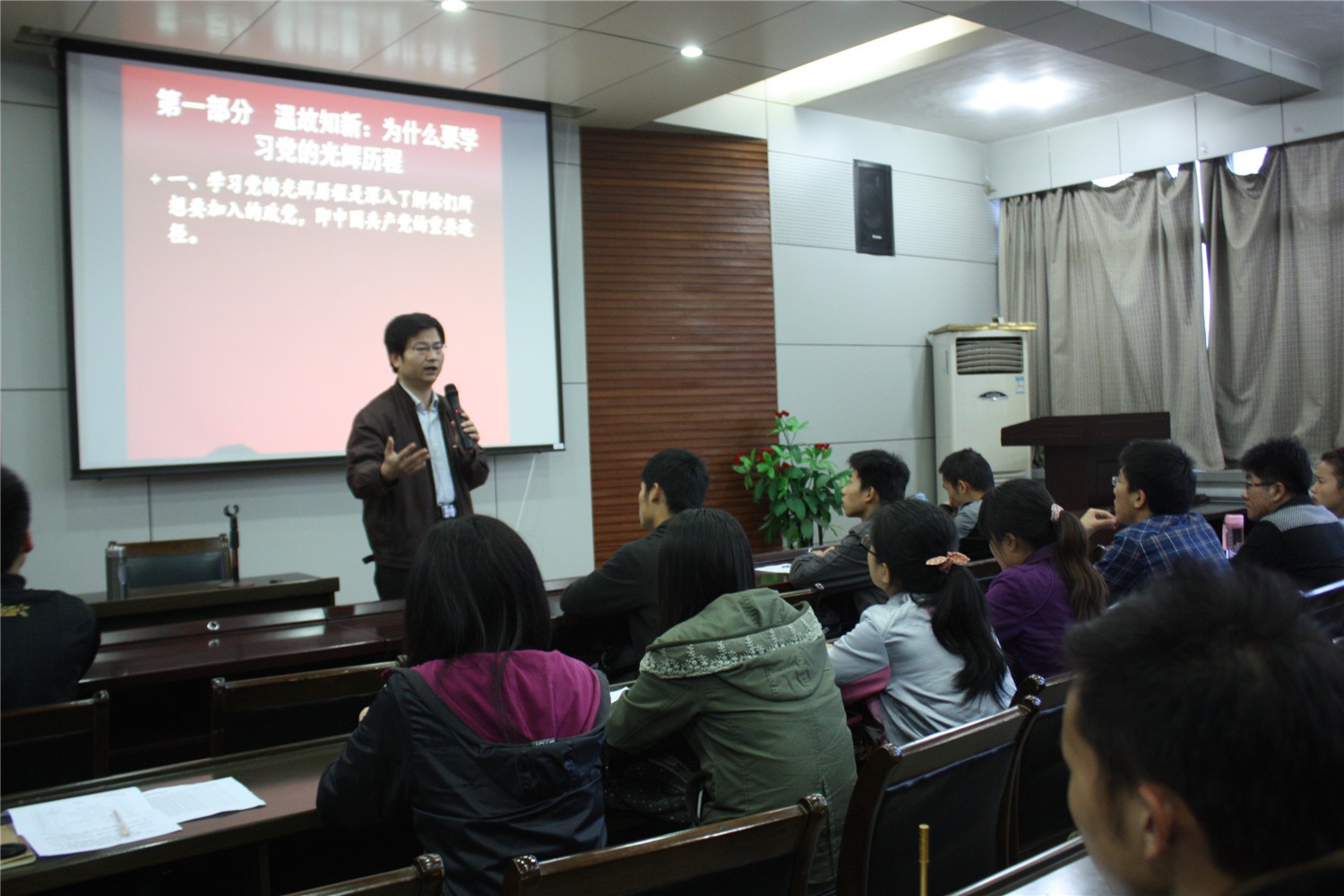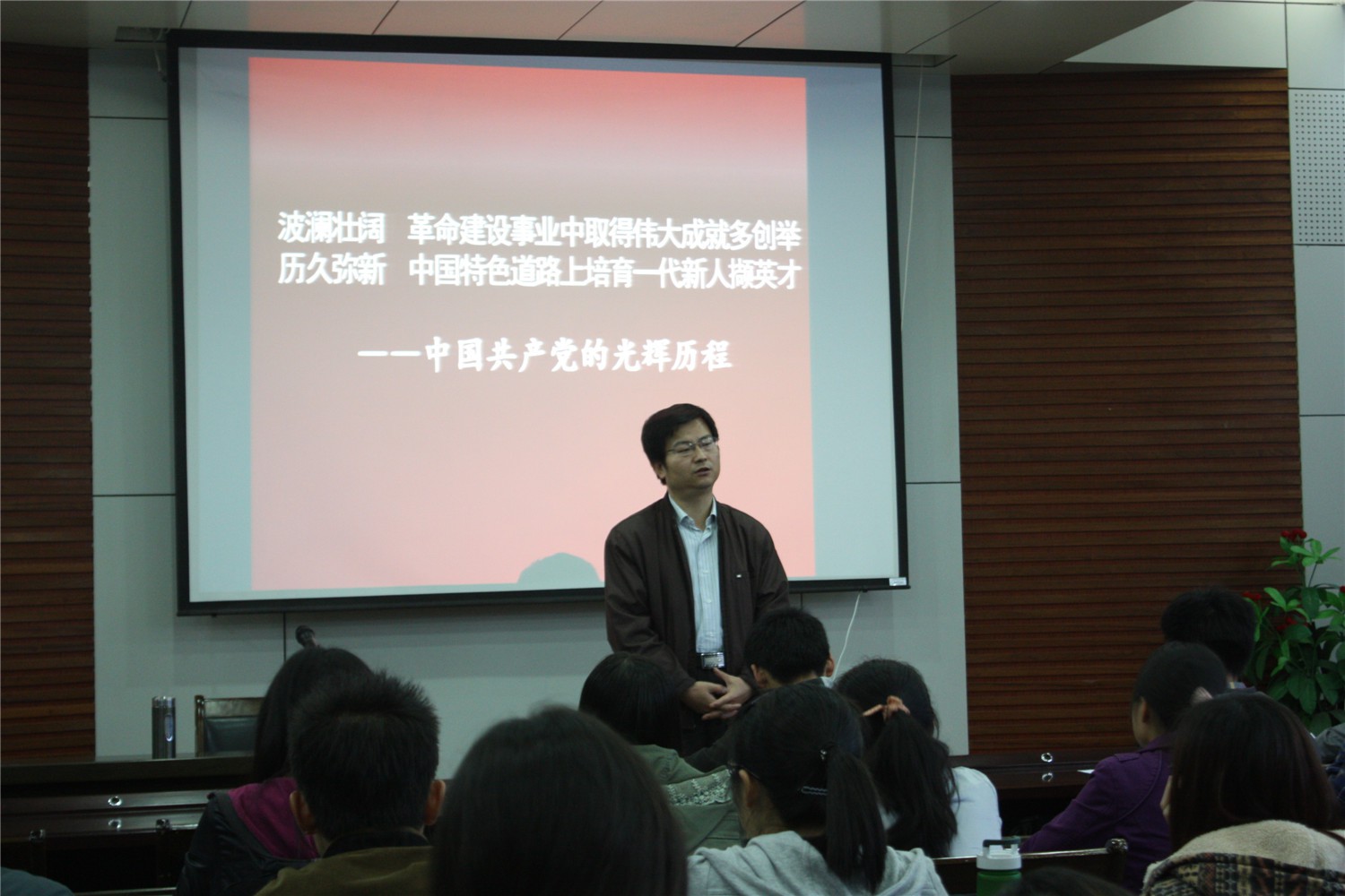 2014年4月21日晚,万象城娱乐awc线路党校分校第二十一期党课培训在万象城娱乐awc线路报告厅顺利举行。万象城官网党委书记胡波老师应邀担任此次党课培训讲座第一场的主讲,团委书记胡雯洁老师主持了本次培训班的开学典礼,全院七十余名学员到场参加了此次培训。 会议伊始,胡雯洁老师就党课培训课程的基本安排及会场纪律做了简短的介绍,至此,拉开了万象城官网第二十一期党课培训的帷幕。在同学们的殷切期待中,胡波老师开始了以“党的光辉历程”为主题的精彩报告,并将这一主题分为三个部分进行了详细讲解。首先,胡老师以为什么要学习党的光辉历程和同学们进行了交流,使同学们认识到了学习党的光辉历程的重要性。随后,胡老师带领我们一起回忆了中国共产党的光辉历程,讲述了优秀共产党员的先进事迹,使同学们对他们产生了崇高的敬意,也深深的激起了同学们的爱国情怀。接着胡老师通过分享在战争时期三位爱国青年的家书,以此来激励同学们在学校能够认真学习、不断提高,今后为党、国家和人民作出贡献,并在今后的工作中能立足本岗、尽职尽责。最后胡老师向同学们送上美好祝福。本次培训讲座在同学们的热烈掌声中落下帷幕。 通过本次党课的学习,使同学们对党的光辉历程及党的先进性有了更加深刻的理解,提高了同学们的思想感悟,激发了同学们的爱国情怀,同时,为同学们争取早日加入中国共产党,成为一名光荣的共产党员打下了良好的基础。 |