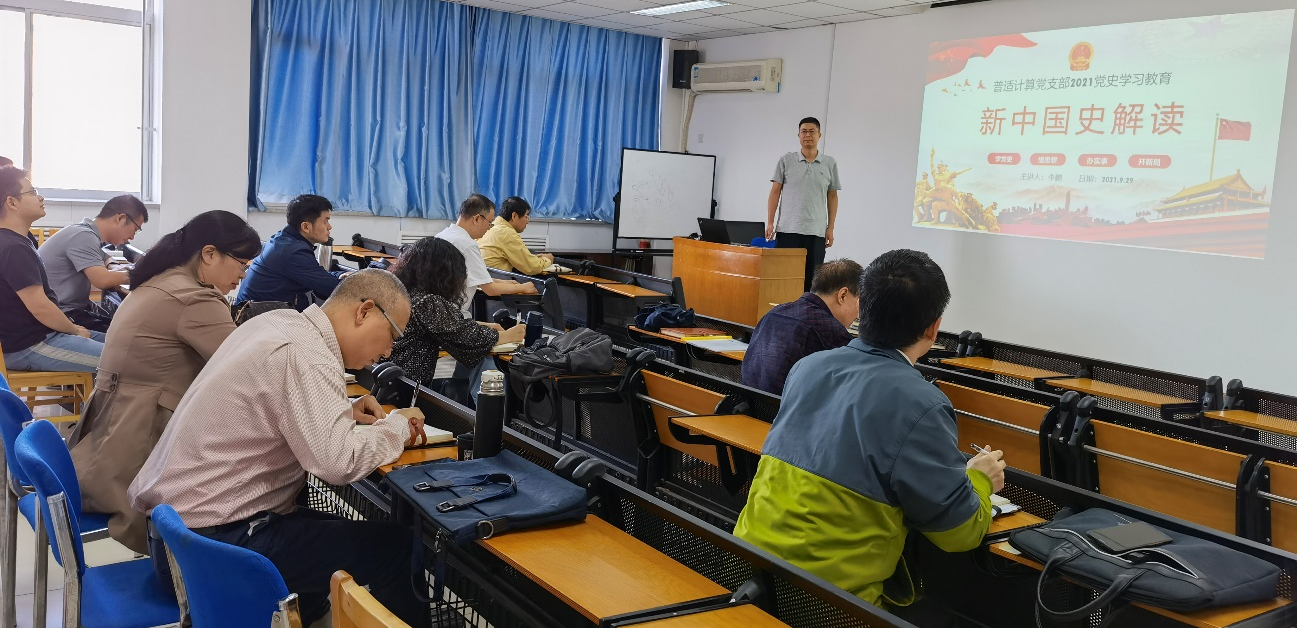 2021年9月29日下午,万象城娱乐awc线路李鹏副院长以“新中国史解读”为主题,为普适计算支部讲党课,指导支部开展党史学习教育。