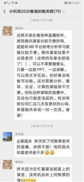 每门课程、每个教学班都建立了QQ群或微信群,老师、学生通过事先演练熟悉平台、工具等教学环境,提前找出线上开课可能遇到的问题,以保证正式开课的顺利。