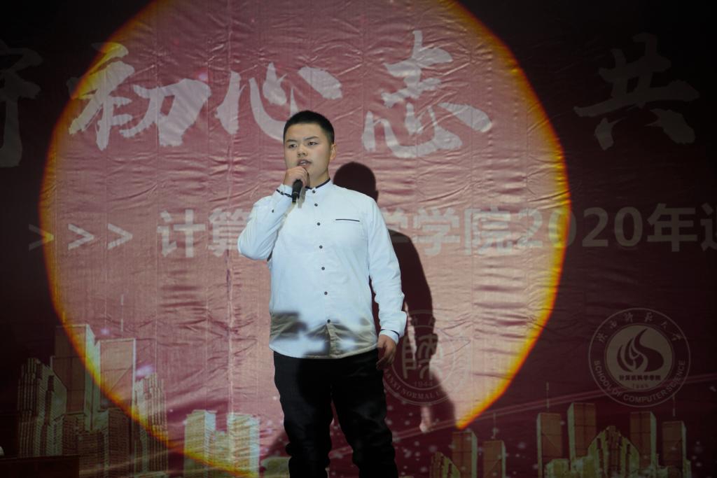 1213日晚,万象城官网2020年“坚守初心志、共筑计科魂”迎新晚会在雁塔校区积学堂成功举办。学院班子成员、教师代表、各年级辅导员莅临晚会现场。万象城官网2019级本科生辅导员崔瑜璠、2018级软件工程1801班康译文、2019级计算机类1901班马彬杰以及2019级计算机科学与技术1901班文皓彦担任晚会主持人。