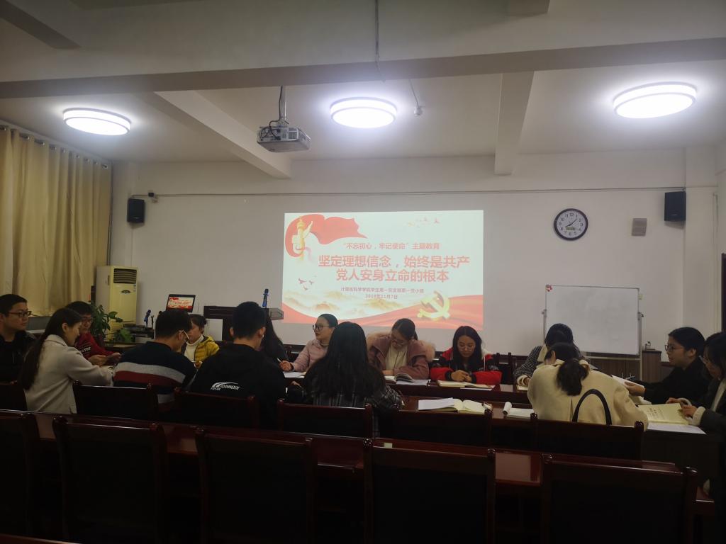 11月7日晚八点,万象城官网学生第一党支部第一党小组在文津楼3412报告厅开展了“不忘初心、牢记使命”主题教育集中研讨学习会议。活动由党小组负责人禹棋洺主持,秦可楠记录,学生第一党支部组织委员冯苗苗和第一党小组全体成员出席了本次学习交流活动。
