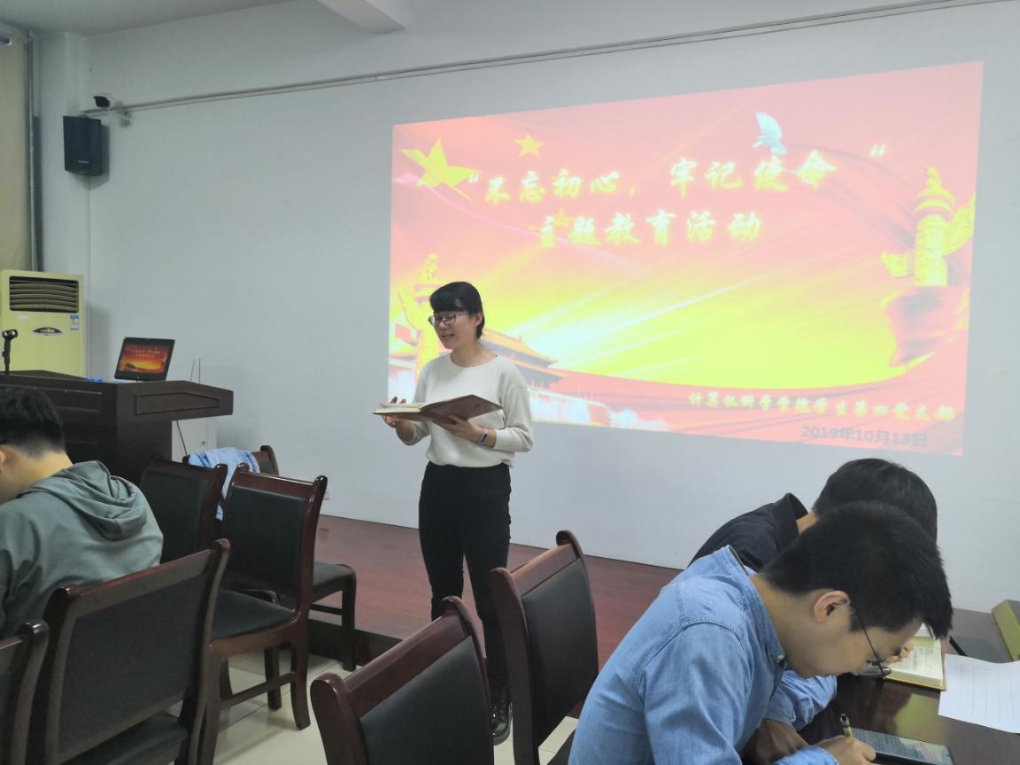 10月13日晚,万象城官网学生第四党支部于学院报告厅开展了 “不忘初心、牢记使命”主题教育学习为主要内容的支部大会。学生第四党支部全体成员参加了会议。会议由支部书记刘亚灵主持。