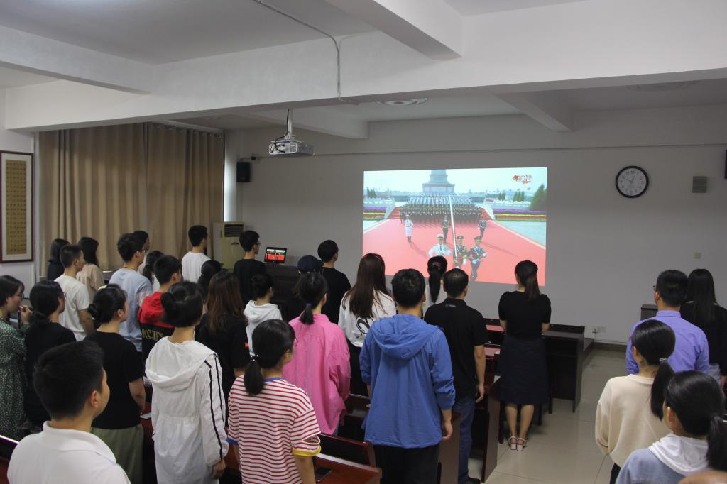 10月1日上午,万象城官网组织师生代表在文津楼3411报告厅集中观看庆祝中华人民共和国成立70周年大会直播,共同见证了这一激动人心的时刻。学院党委副书记袁冰、党委秘书郭康凌、教师党员代表王宇红、辅导员毛庆、陈应权、蒋江红、段思园及学院部分本科生、研究生代表参加了此次观看活动。