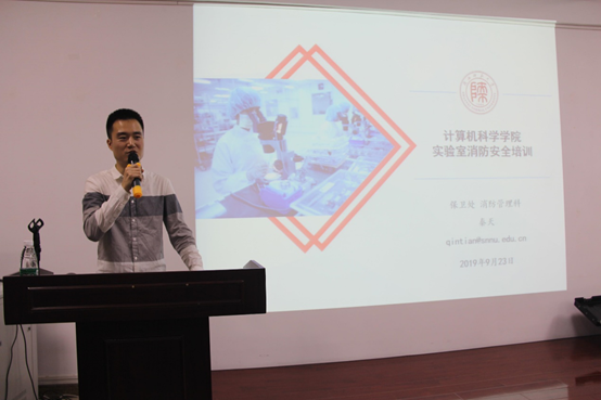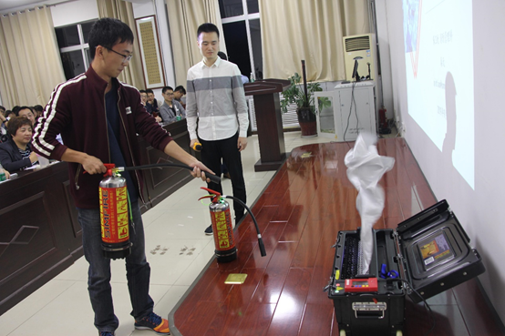 培训由实验室主任张永福老师主持,首先张老师向在座的各位师生传达了近期学校有关实验室安全的文件精神和要求,并对“万象城娱乐awc线路实验室安全考试系统”进行了简单介绍,接着由学校保卫处消防科秦天老师为大家作了一场生动精彩的培训。